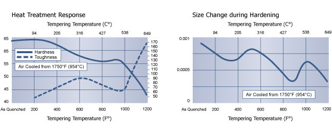 为了最大限度地减小横截面内部应力大于6英寸(152.4 mm)并提高热处理后EDM的工具的稳定性,强烈建议在回火温度下浸泡4到6小时。